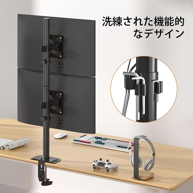 【2画面PC作業】モニタースタンドやモニター台の代わり、本デュアルモニターアームは2画面作業することを実現でき、スペースを大きく節約します。また、ケーブルクリップがあるので、ケーブルを簡単に整理&保護し、見た目はスッキリとなります。作業面を解放し、机上スペースを活用し、仕事の効率がアップ!