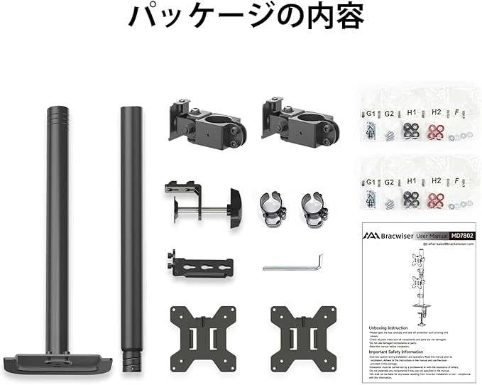 Bracwiser モニターアーム デュアルディスプレイ スタンド 上下2画面 PCモニターアーム 液晶ディスプレイ スタンド グロメット式&クランプ式 13-32インチ対応 耐荷重10kg(1台) VESA規格75-100mm MD7802