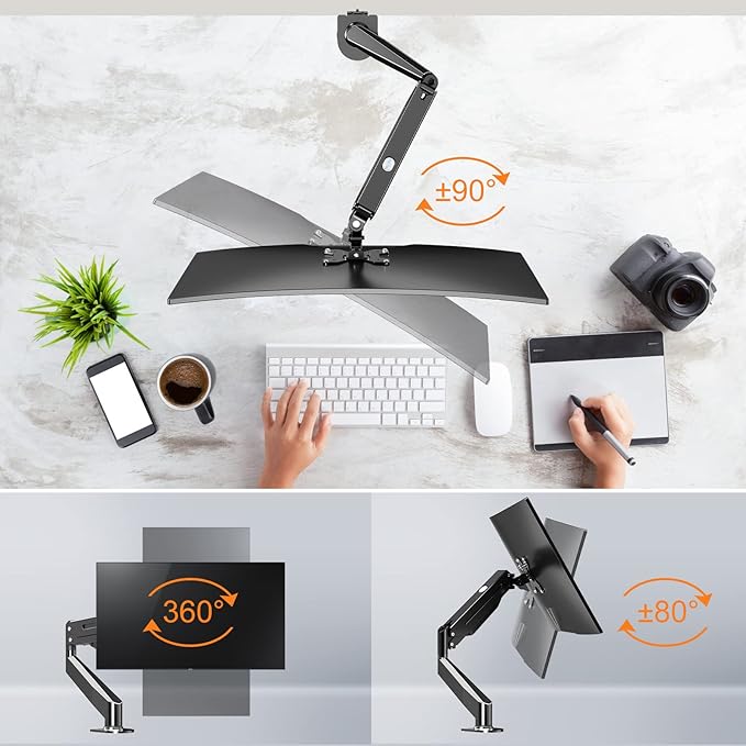 【角度調節】革新的な多軸設計で画面を上80 、下80 、左右180 、回転360 に調節可能で、活動範囲が広くて便利です。どんな姿勢でも液晶画面が見れて、目の疲れを軽減でき、作業効率が上がります。