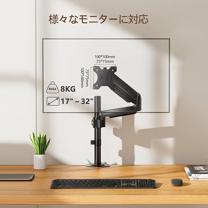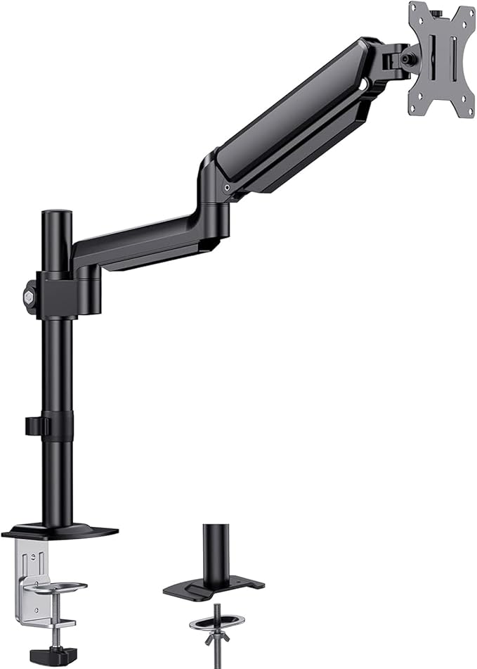 HUANUO (ファーノー) モニターアーム ディスプレイアーム ガス式 VESAアーム クランプ式&グロメット式 PCアーム 17~32インチ対応 耐荷重1~8kg 角度調節 ケーブル管理 HNSSK1