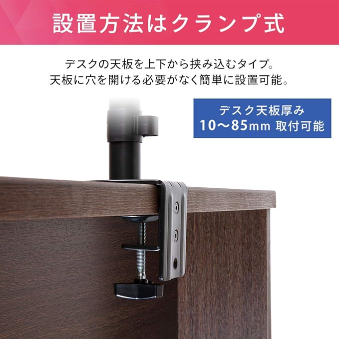 取り付け可能なデスク:デスク天板厚み10~85mm
