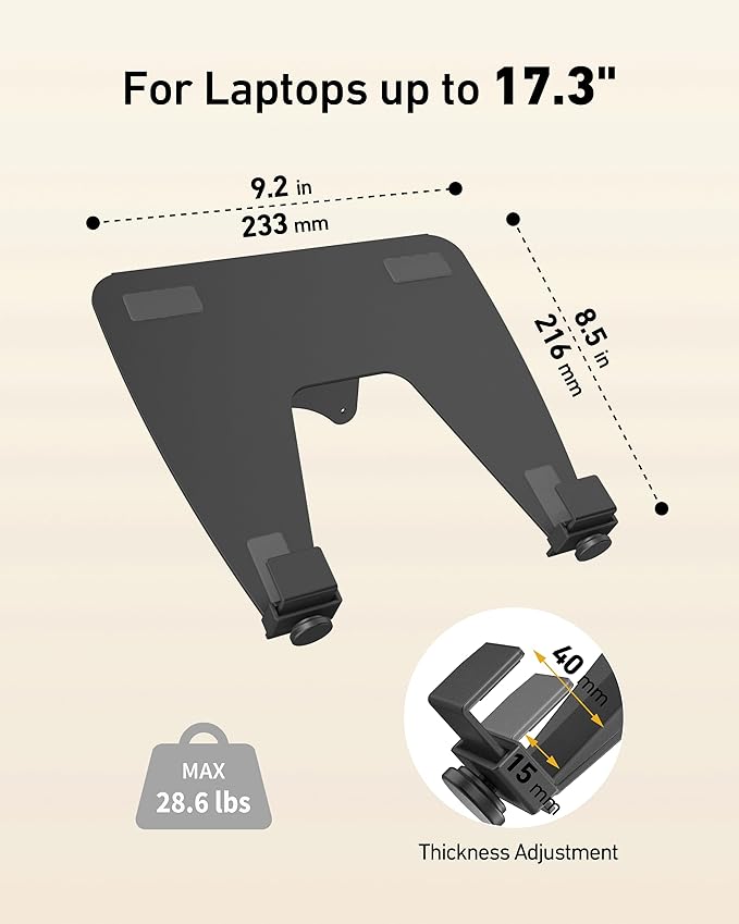 【幅広い互換性】: このノートブックトレイは、100 x 100mm VESAパターンホールを備えたほとんどのVESAマウントに最適です。28ポンド以内の6インチから17.3インチのノートパソコンと互換性があります。