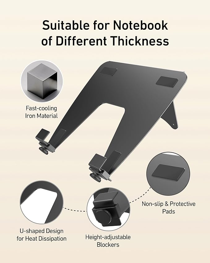【L字型ブロッカー】: 下部の縁と滑り止めパッドがデバイスをしっかりと固定し、ノートパソコンが滑ったり落下したりするのを防ぎます。 仕事に没頭しましょう!