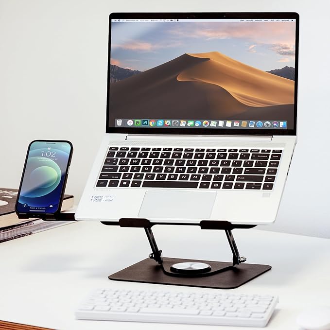 MOHOPE ノートパソコンスタンド スマホスタンド付 パソコンスタンド 回転 ノートPCスタンド 折りたたみ式 角度 高さ無段階調節 滑り止め 安定性 人間工学 姿勢改善 猫背改善 放熱 laptop stand 耐荷重8kg 17.3インチまで (ブラック)