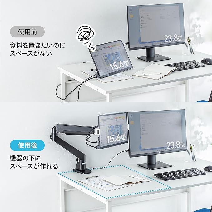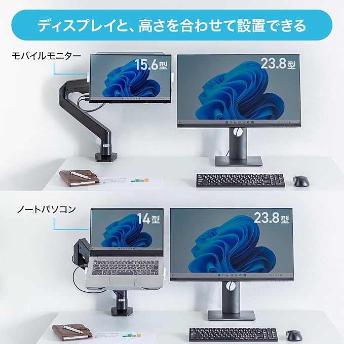 14~17.3インチまでのノートパソコン、サブモニターの設置を想定しています。
