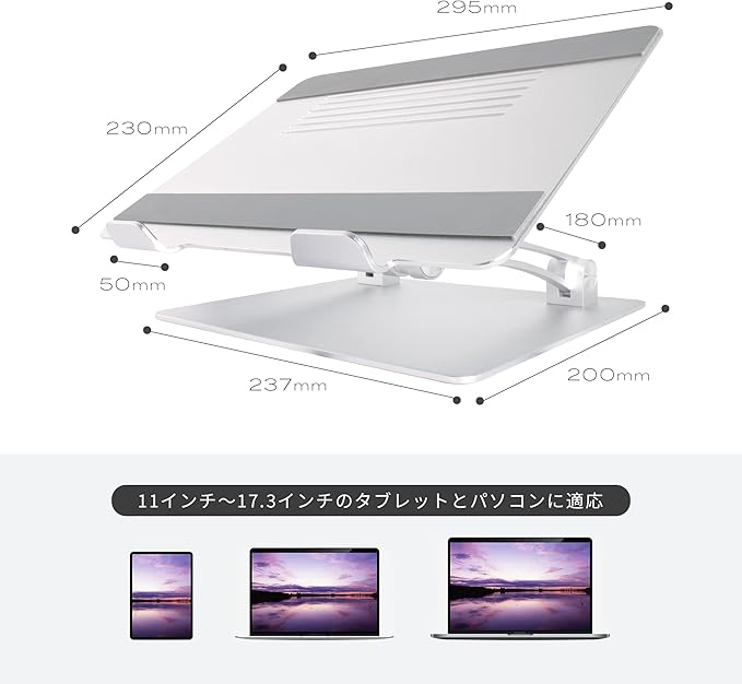 11インチ~17.3インチのノートパソコンやタブレットに対応:幅広いサイズのパソコンやタブレット、液タブに対応しています。 タブレット型のノートパソコンや大画面のノートパソコンまで使用をすることができます。