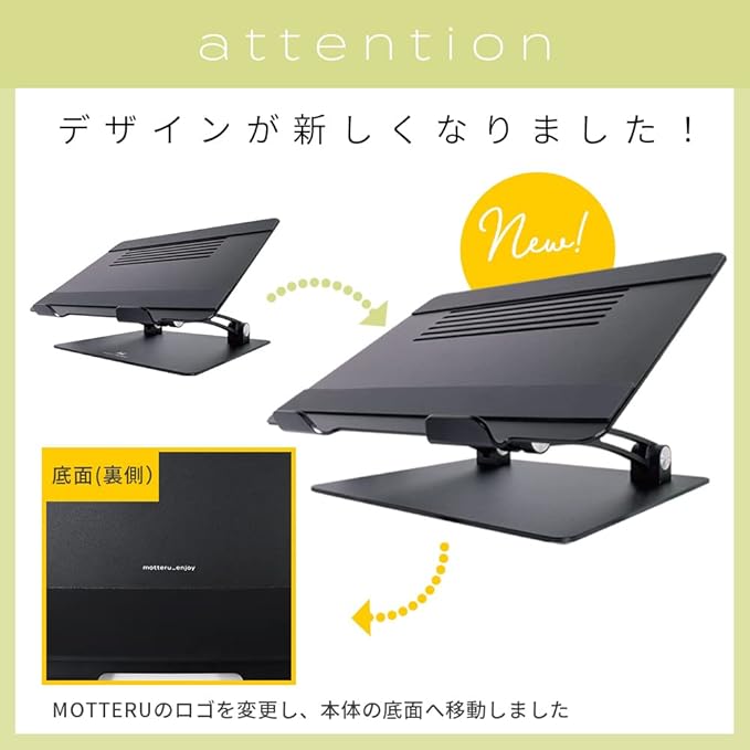 MOTTERU(モッテル) ノートパソコンスタンド PCスタンド タブレットスタンド 液晶タブレット対応 POS レジ 17.3インチまで対応 無段階 高さ調整 角度調整 姿勢改善 腰痛 猫背 肩こり 解消 折りたたみ 滑り止め 耐荷重20kg アルミニウム合金製 放熱性 ブラック MOT-PCSTD01S-BK