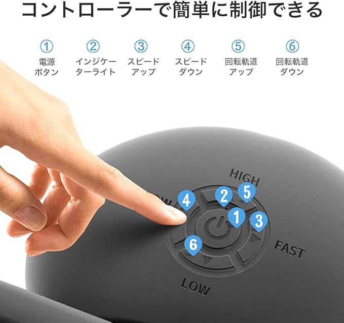 ・回転スピードや角度は調整可能。お好みの速度で使用できます。