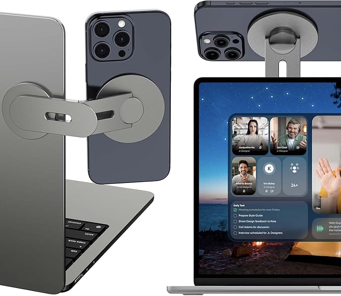 4. ラップトップ磁気携帯電話スタンドは、iPhone 11以下のモデルとAndroidモデルと互換性のある金属リングを装備し、iPhone 16から12の裸電話直接吸引をサポートしています。