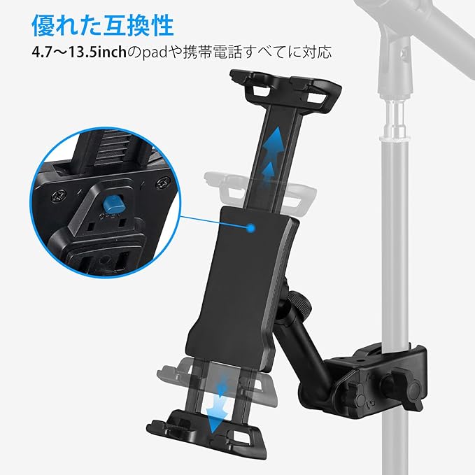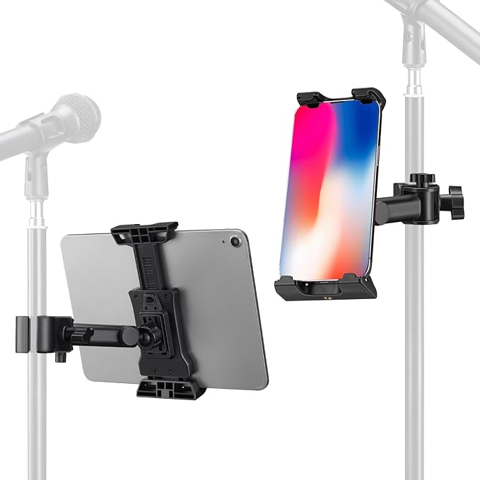 LEKATO タブレットホルダー マイクスタンド用 調節可能 マイクミュージックスタンド 電話ホルダーマウント iPad、iPhone、4.7-13.5インチタブレットとスマートフォンに対応