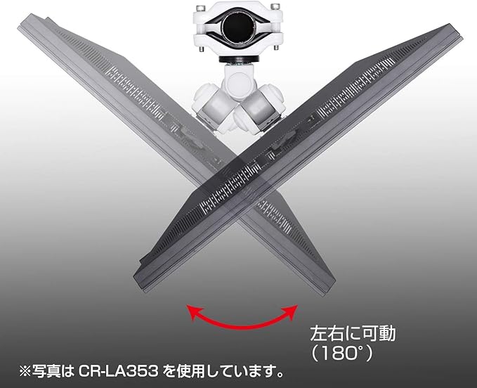 ●ディスプレイ取り付け部は360 回転するので、水平方向に取り付けられたパイプにも取り付け可能です。