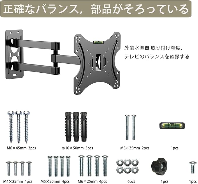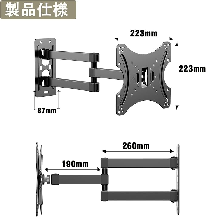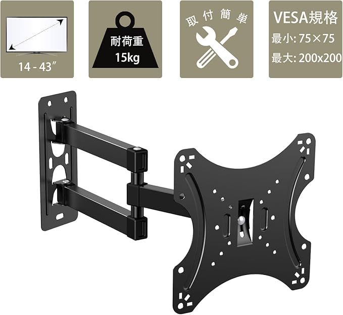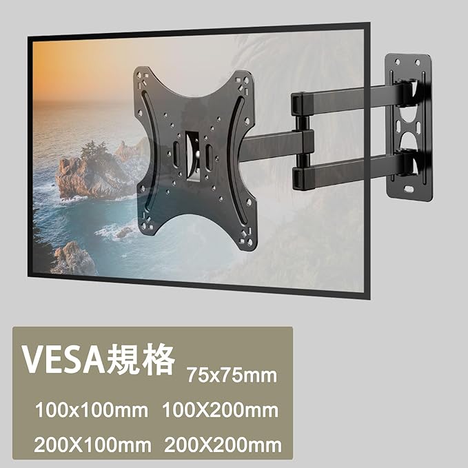 【テレビの背面のネジ穴の間隔:幅(よこ)75~200mm 、高さ(たて)75~200mm】VESA規格対応、汎用性が高い。上下左右 角度調節可能 75mmX75mm,100mmX100mm,200mmX200mm,適用 TCL LG シャープ SHARP AQUOS ハイセンスHisense オリオン 東芝 TOSHIBA ソニー Samsung maxzen Panasonic パナソニック日立オリオン 液晶 モニター テレビ