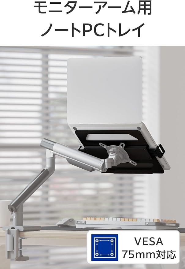 ●ノートPCの位置を自在に調整できる。※取り付けるモニターアームに依存します。