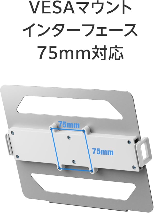 ●製品背面のVESAマウント 75mm 75mmにモニターアームを固定