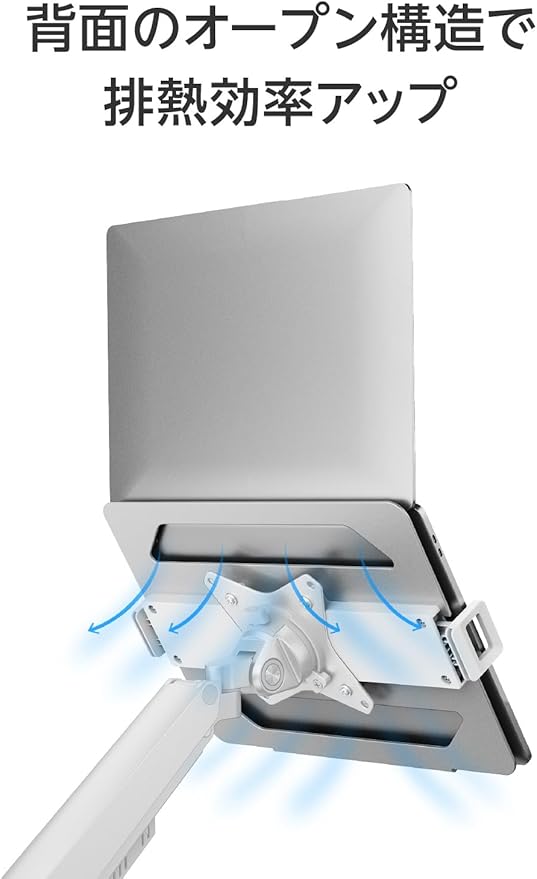 ●背面のオープン構造により、ノートPCの排熱が効率アップします。