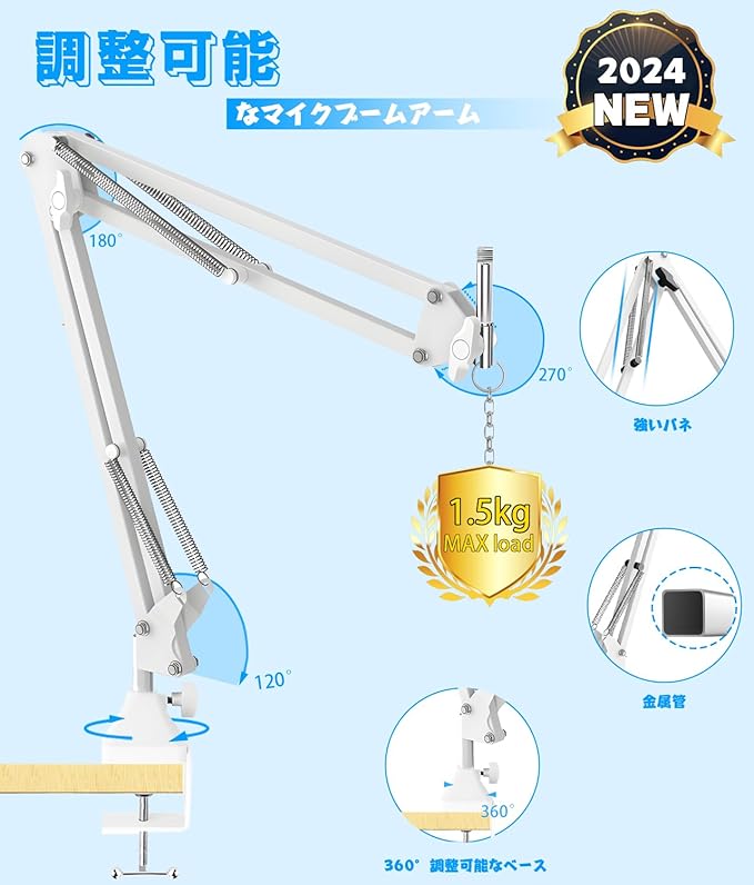 [アップグレードされたデスクトップ用マウントクリップ]ブームアームスタンド には頑丈な金属製のテーブルマウンティングクリップが付いており、最大1.5kgまでに耐負荷可能、完璧に機能しています。