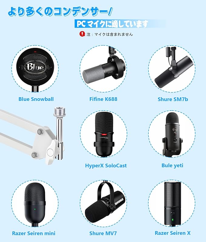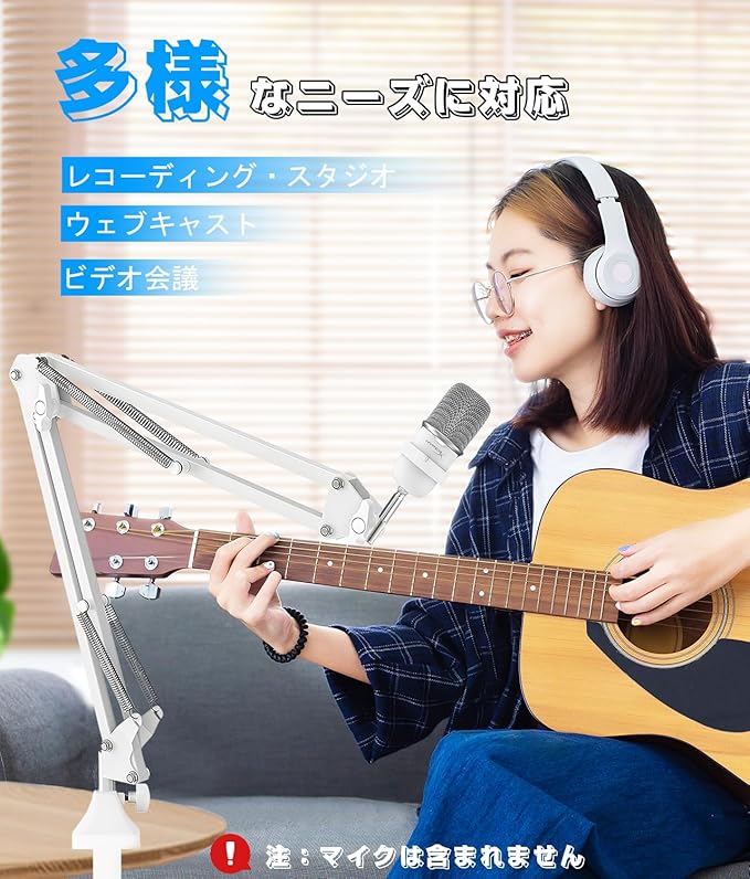 [幅広い互換性]調整可能なマイクアームスタンドには、幅広いショックマウントやマイクに対応する標準的な3/8 "から5/8 "へのアダプターが付属しています。 このマイクスタンドは、ゲーム、ストリーミング、ポッドキャスティングなどのシナリオに最適で、レコーディング初心者に優しいです。