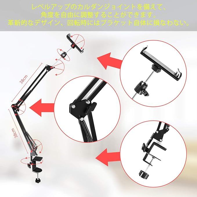 【四つの回れる関節、自由に調整できる】 最新のスタンドは四つの回れる関節と自由に回る金属ダブルボールを備えて、普通なブラケットより、一層柔軟になります。そのため、最も快適な視角を調整できます。それに、使用後すぐに受け入れできるため、非常に便利です。