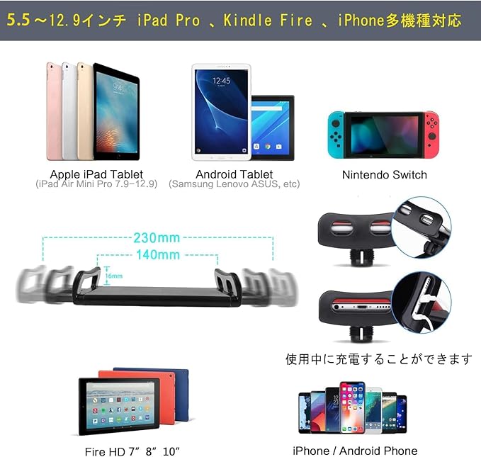 【対応端末】約5.5-12.9インチのタブレット & スマホ( iPad Pro 7.9 / 9.7 / 10.5, iPad air 2 3 4, iPad mini2 3 4, Galaxy S8 S7 S6, Note 6 5, Android Nexus 7, Kindle, N-Switch, fire hd 8, iPhone XS/XS Max/XR/X 8 7,…)に対応できます。寝室での動画鑑賞、YouTubeを見る、在宅勤務、オンライン授業など、どんな場所でもご好みのように使用可能です。