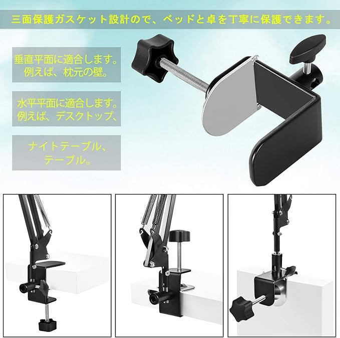 【2022業界最新改良版、垂直平面と水平平面に適合します】オンライン授業で役立つ一品。枕元の壁だけでなく、デスクトップにも取り付けることができます。横になってスマホやタブレット見る時、大勧めです。ご注意:垂直平面から水平平面に切り替わて使う場合に、底部の固定用ネジをねじり、根元のネジ穴位置に固定してお願いします。