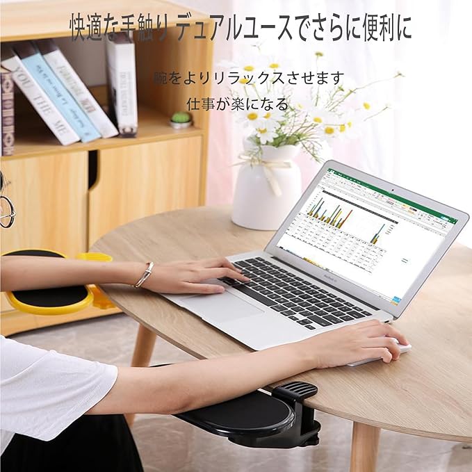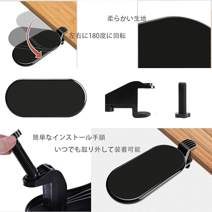 パソコンの肘掛け デスクコンピューターアームレスト 肘置きデスク パソコンデスクのアームレスト デスク肘置きき デスクエクステンダーアームレスト 肘置き 机 180 左右回転可能 取り付け簡単 疲労軽減