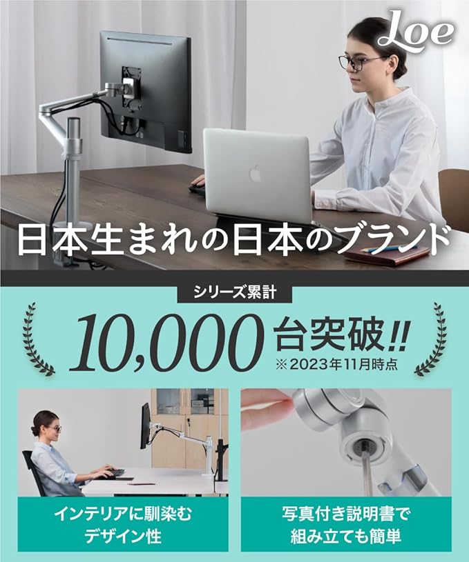 LOE(ロエ) シングル モニター アーム ディスプレイ デスクマウント クランプ式 シンプル 安定 LOL1 ブラック
