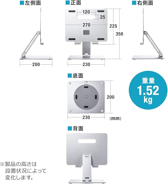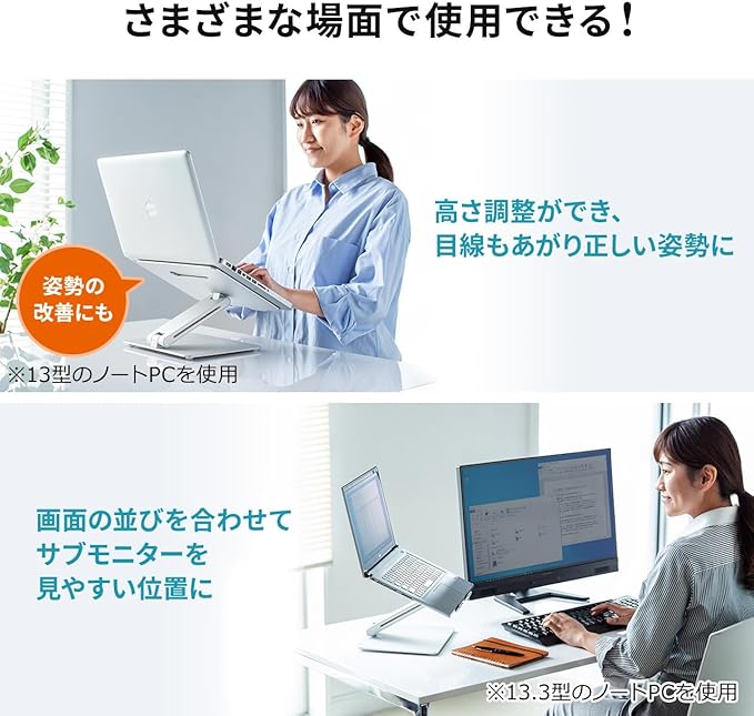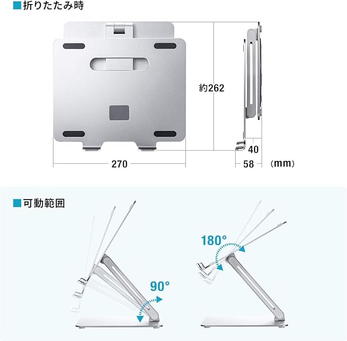 ●ノートパソコンやタブレットを設置できるアルミのスタンドです。