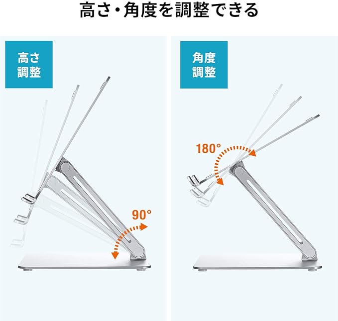 ノートパソコンやタブレットを設置できるアルミのスタンドです。