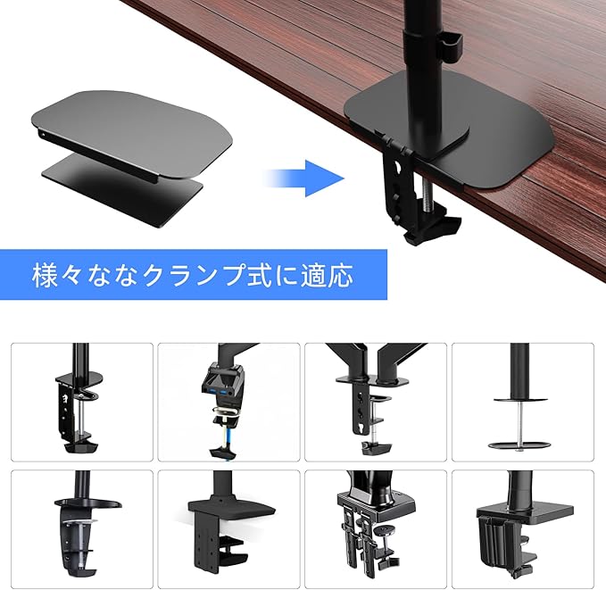 【互換性高い】汎用的なモニター補強として、様々な液晶ディスプレイアームに適用します。
