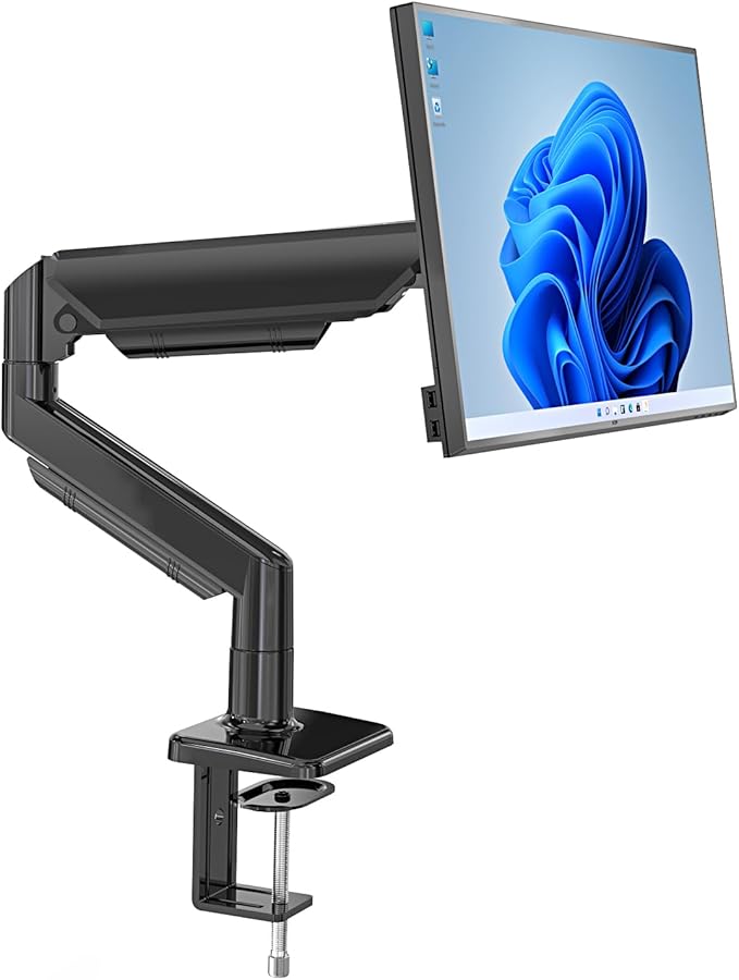 H&C(hook&clasp) PC モニター アーム 耐荷重2~9kg 最大32インチ スクリーン シングルモニターアーム VESA75*75~100*100 角度調節 高さ調整 VESAアームガス式 ガススプリング式 ケープル収納 デスク設置用 ブラック