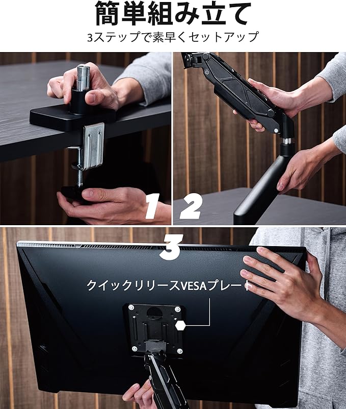 スッキリ整理 – 省スペース&自由なレイアウト調整:洗練されたフルモーションアームにより、デスクの使用可能面積を80%以上拡張。13”-34”(耐荷重10kg)までのモニターに対応し、VESA 75x75mm & 100x100mm に適合。自由なレイアウトを実現します。