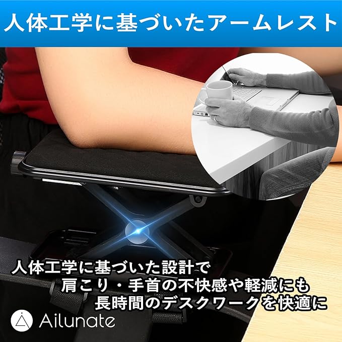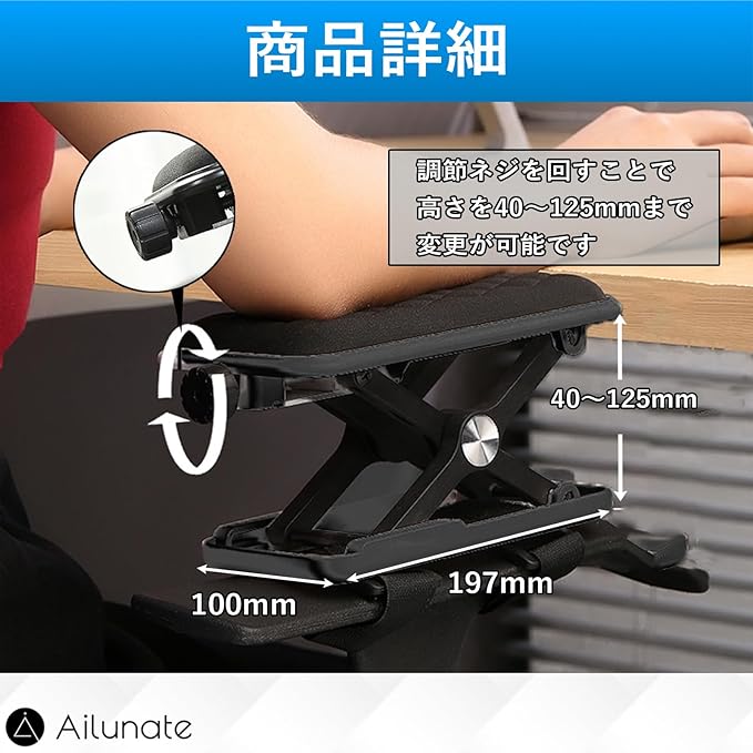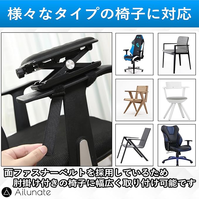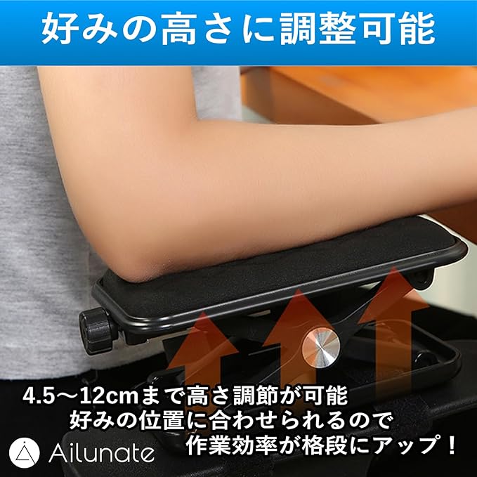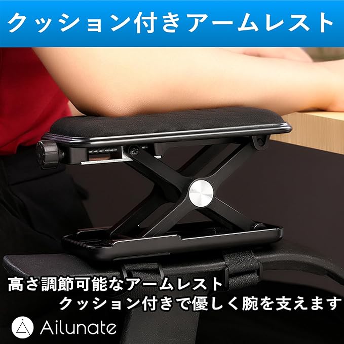 Ailunate 肘置き 椅子 クッション 肘掛け デスク パソコン アームレスト オフィスチェア 後付け テレワーク 肘 腕 置き 高さ 調整 ブラック
