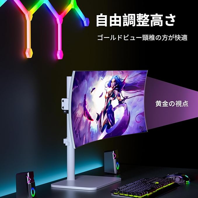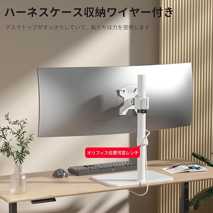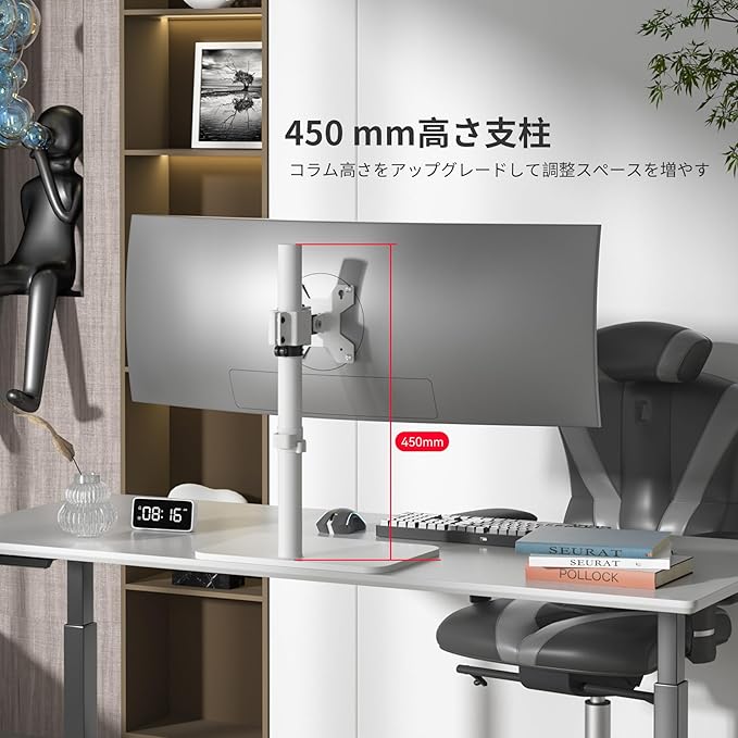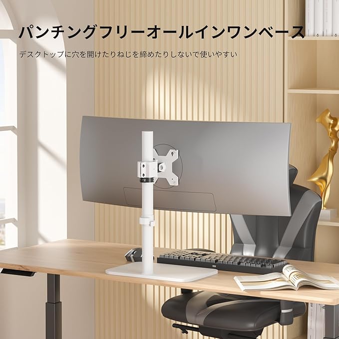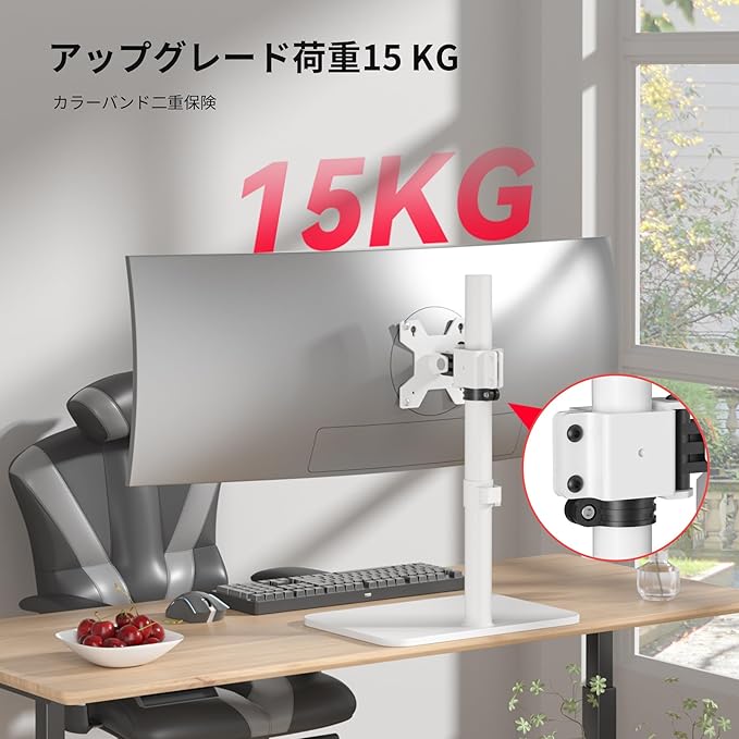 ★【安定性抜群】 強化スチール製のアームと安定感のある自立式ベースを採用し、最大15kgのモニターをしっかりと固定できます。ベース部分には滑り止めパッドが付いており、モニターの揺れやぐらつきを最小限に抑えます。大型ディスプレイを使用される方や、モニターの安定性を重視される方におすすめです。