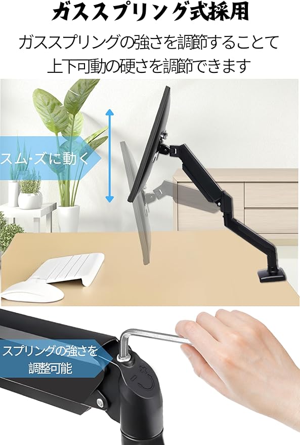 ガススプリング式なので少ない力で画面の上下前後調整をスムーズに行うことができます。