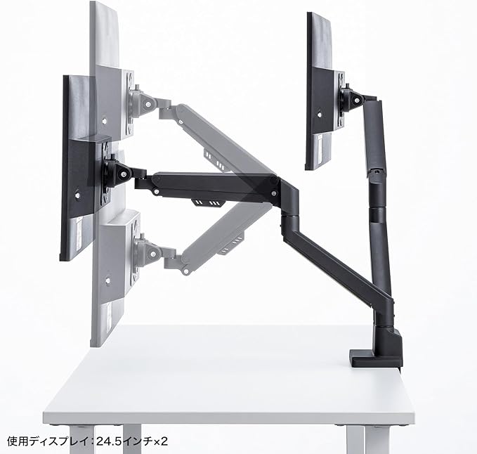 ●17~32インチサイズのモニターに対応するガススプリング式のデュアルモニターアームです。