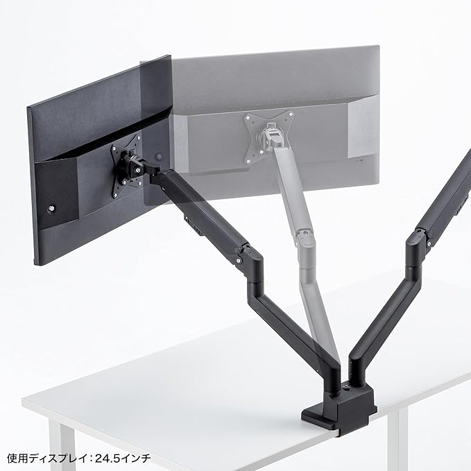 サンワサプライ モニターアーム(デュアル・ガススプリング式・薄型ショートクランプ・ブラック) CR-LAC2403BK
