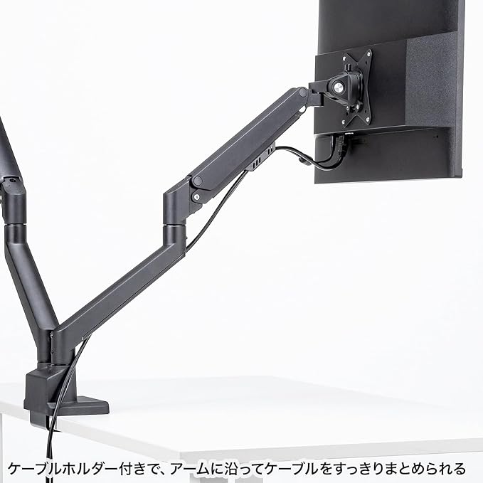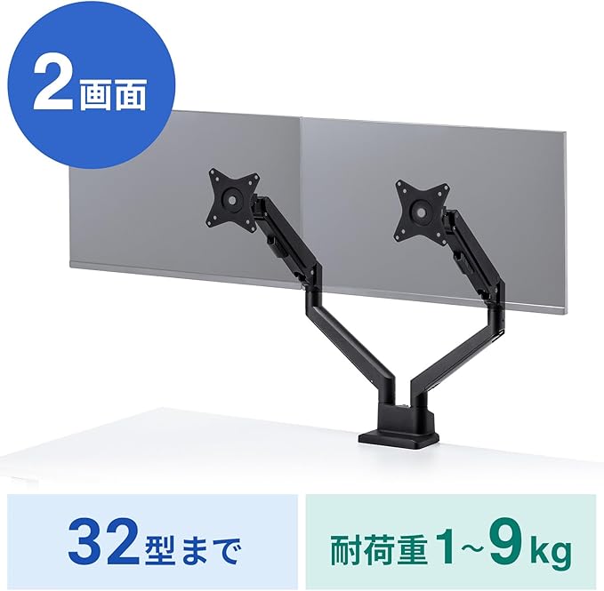 17~32インチサイズのモニターに対応するガススプリング式のデュアルモニターアームです。