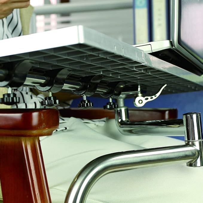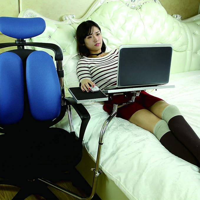 座る姿勢を調整して人生を楽しむ: 人間工学に基づいたキーボードノートパソコンタブレットマウススタンドホルダーマウントが椅子に取り付けられ仕事やゲーム映画鑑賞の際に椅子に最も健康的で居心地の良左利きまたは右利きに適しています椅子の脚の周りをピボットします使いやすい