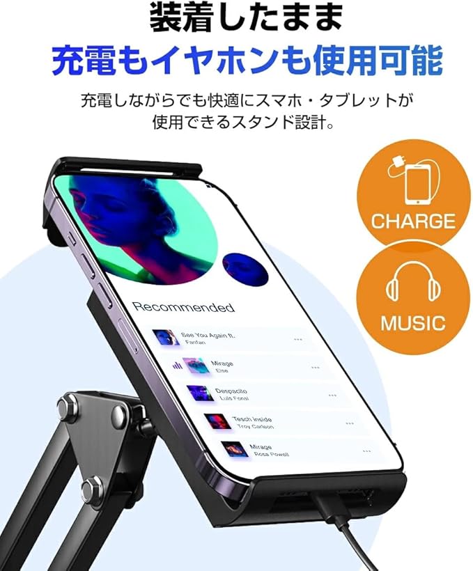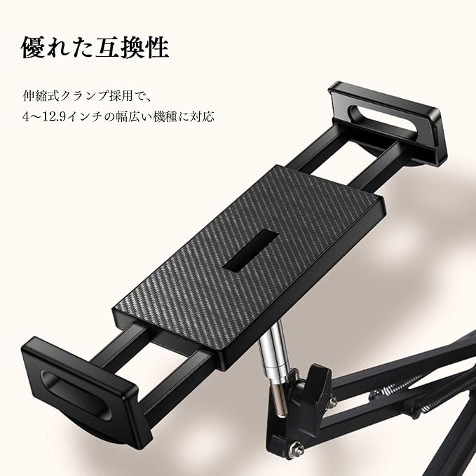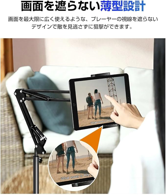 【幅広い対応機種】 4~12.9インチのタブレットやスマートフォンに対応。iPad、iPad mini、iPhone、Kindle、 Switch、Galaxy、Sonyなど多くのブランドに互換性があります。高さ175cmの設計で、さまざまな利用シーンに 対応可能です。