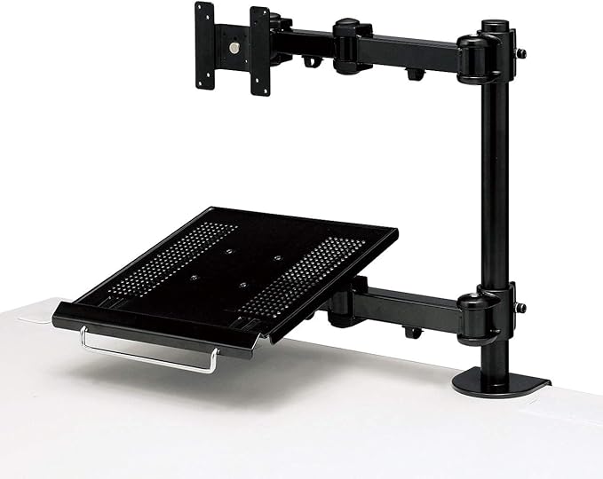 サブマシンのノートパソコンを設置するのに最適です。液晶ディスプレイとノートパソコンを1本のポールで設置することができます。