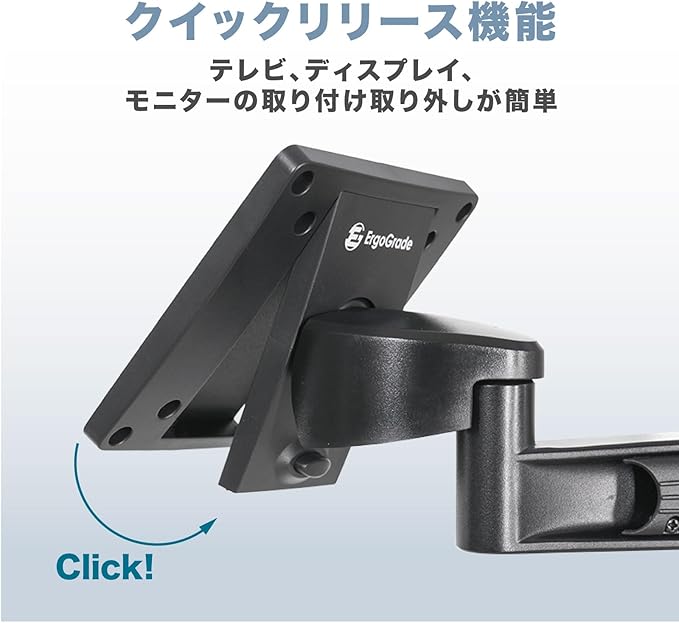 ErgoGradeアルミニウム合金製テレビ壁掛け金具 15~32 インチ対応 耐荷重2~10kg PC TVモニターアームLCD LED 液晶テレビモニター用 クイックリリース機能VESA100x100 75x75mm対応 多角度調節可能 前後伸縮EGAR210Q