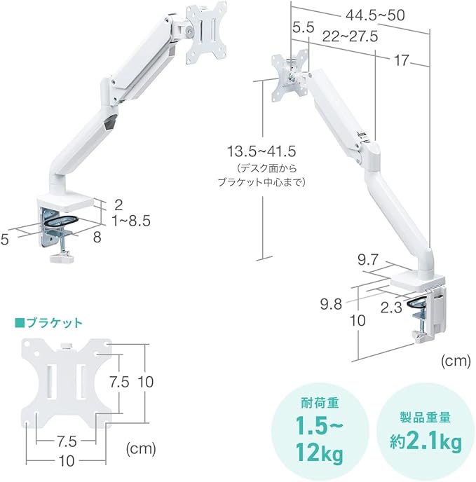 ■製品サイズ:約W11.5 D44.5~50 H13.5~41.5cm(※高さは、デスク面からブラケット中心まで)