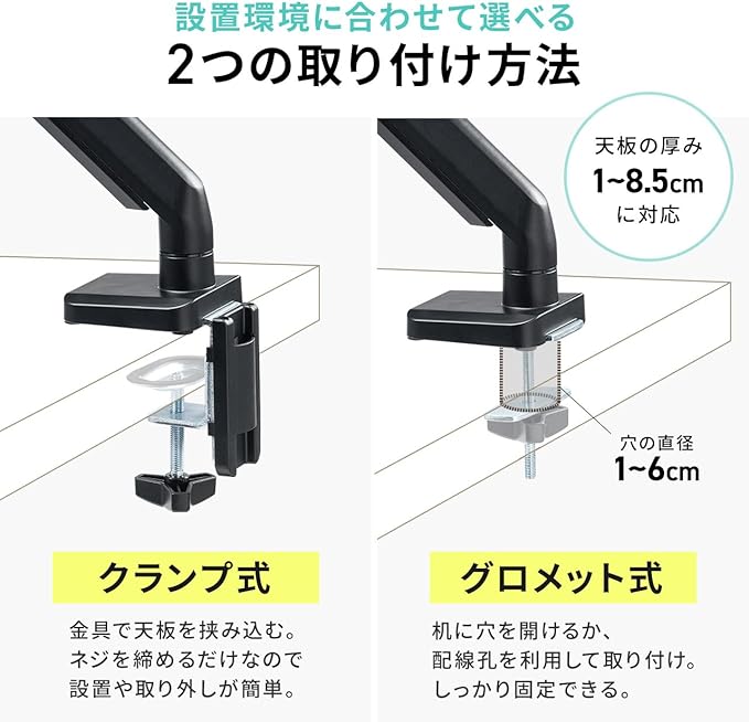 ■取り付け対応デスク:天板厚み1~8.5cmまでのデスク