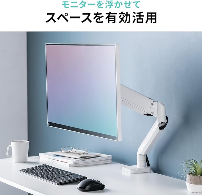 イーサプライ モニターアーム シングル 32インチ対応 耐荷重1.5~12kg ガス圧式 上下 左右 VESA ホワイト EZ1-LAC003W
