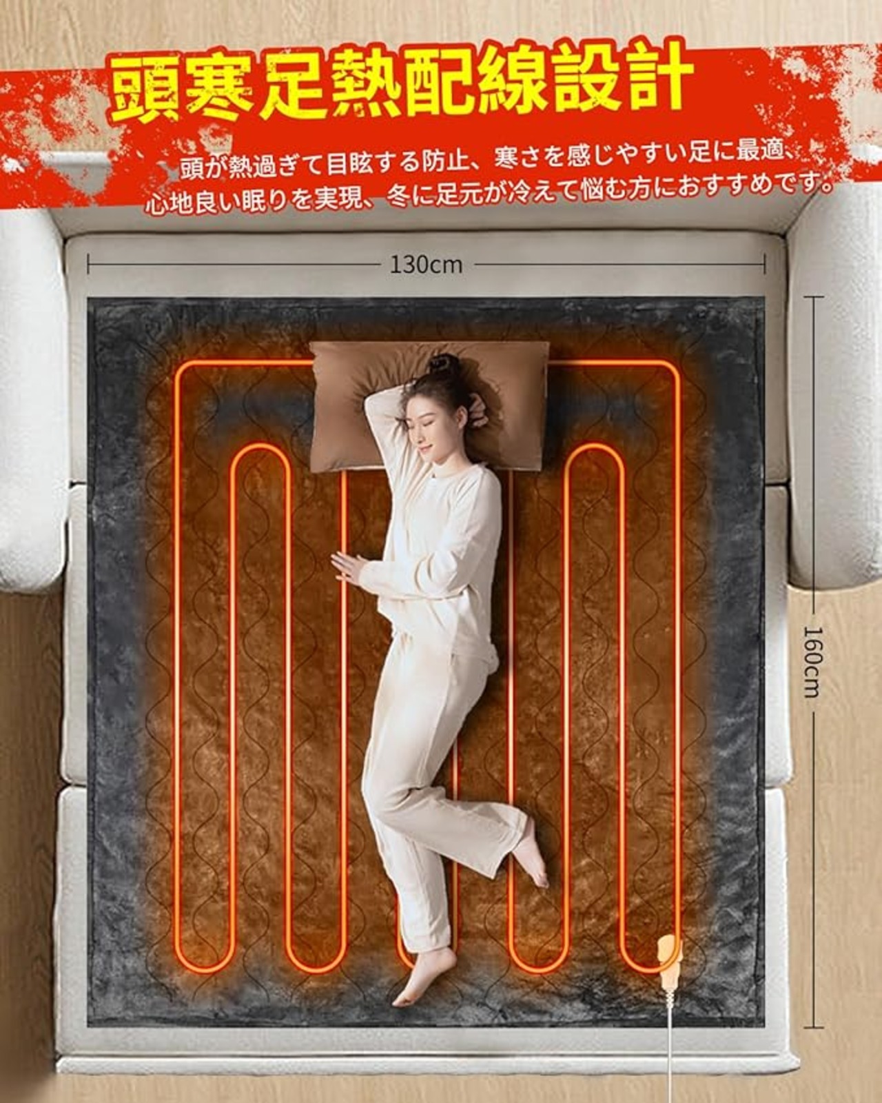 【場所を問わず冬に大活躍&様々な使い方&暖かい贈り物】男女兼用の電気毛布のサイズは160 130cmで、多くの場合に適しています。例えばキャンプ、ピクニック、ソファー、ベッド、オフィス、椅子、車など。夏、エアコン付きの部屋なかでこのまま使って十分です。冬に電気かけ毛布、春と秋に普通の毛布として使えますが、日ごろにひざ掛けとしてもぴったりです。また電気ブランケットは肩掛け、腹掛け、膝掛け毛布などとしてご使用もできます。テレビ、読書、リラックスまたは睡眠時に気持ち良い暖かさを与えてくれます。自分へのご褒美から父、母、奥様、彼女、友人など、ファミリー層にも一人暮らしの方にもとても人気あるギフトでしょう。誕生日 や引越し、クリスマス、新年などのプレゼントに最適です。