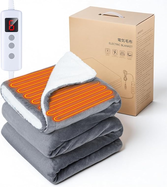 【操作しやすいコントローラー&5つタイマー&6つ温度モード&四重安全保護】電気ブランケットは従来品の3段階から大幅進化!「1(微温)~6(しっかり温め)」まで細かく調節可能、冷え性の方から暑がりな方まで、家族みんなの好みに合わせられます。2/4/6/8/10時間から選べる自動オフ機能を搭載し、「つけっぱなしで朝まで...」という心配なし!電気代の節約にも最適です。操作しやすいコントローラーは大きなボタンと明るい表示で、お年寄りでも迷わず操作できます。その上に、過電圧保護、過電流保護、短絡保護、過熱保護などもしっかり設定されますので、PSE認識済みで日常の使用はご安心ください。寒い季節に冷たくなった体や布団を温め、心地良い眠りをサポートします!「母の日に」「父の日に」「クリスマスの日に」「歳暮へ」プレゼントにも最適!