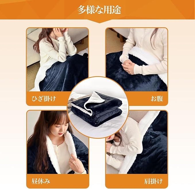 2倍保温:フランネルと厚手のラムウールを採用された、ずっとさわっていたい、極上手触りが楽しめます。電気毛布の保温性が抜群、寒い冬場の就寝時に便利。冷えた体や布団を温め、心地よい眠りに導きます。高温でダニを退治する「ダニ退治機能」付きます。