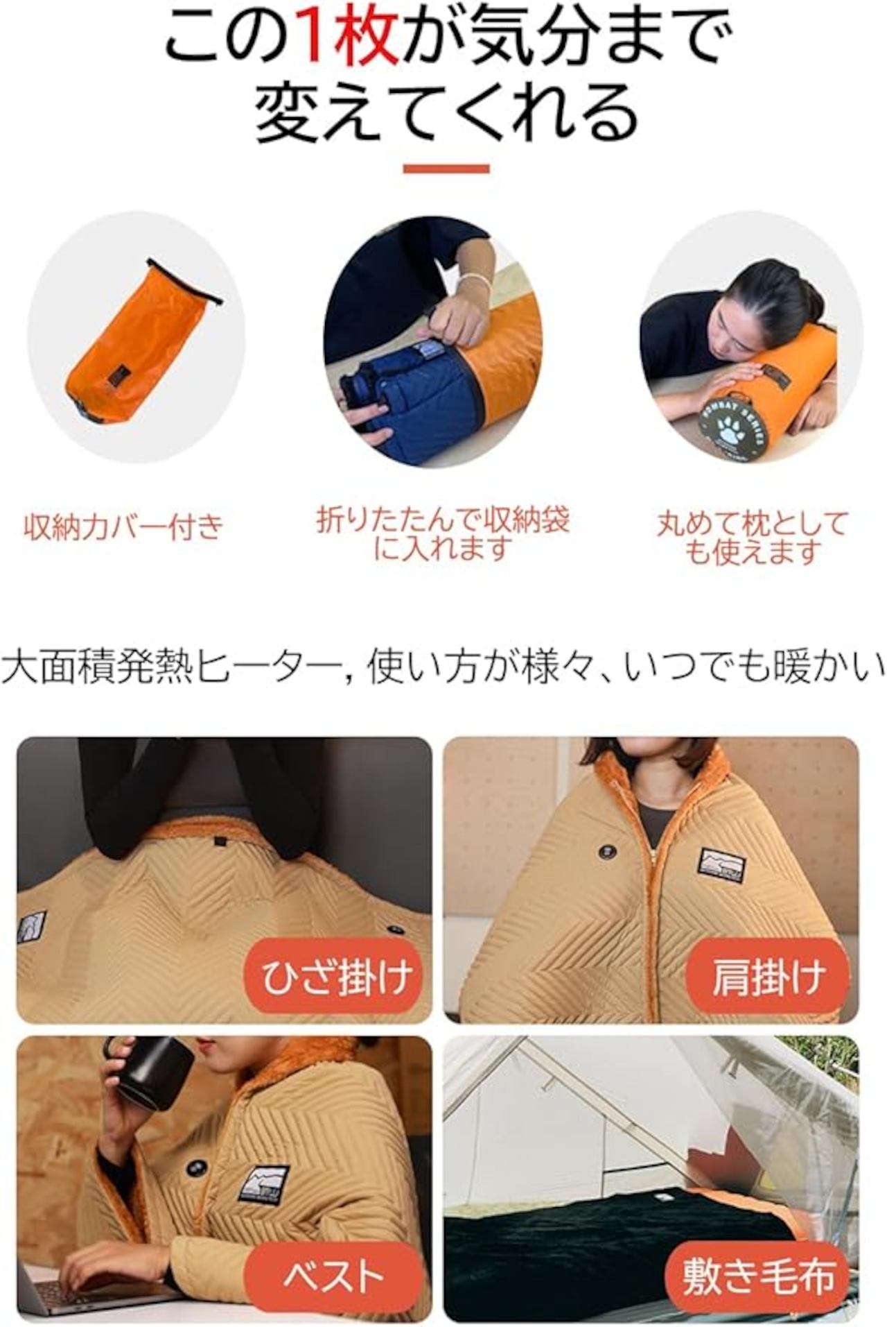 【防水防風耐汚素材で】撥水加工を施した生地を使用しており、全身ぽかぽか、柔らかな肌触りで心地良い電気しき毛布です。 ふんわりと癒される、優しい温もりで寒い冬もあったか快適。寒い季節にも対応可能,電気毛布としての使用はもちろん、肩掛け、ベストなどさまざまな使い方で、心地よい温もりをお届けし、あなたのライフスタイルをサポートします。収納可能なデザインで、持ち運びも簡単。寒い季節を快適に過ごすための必需品です!
