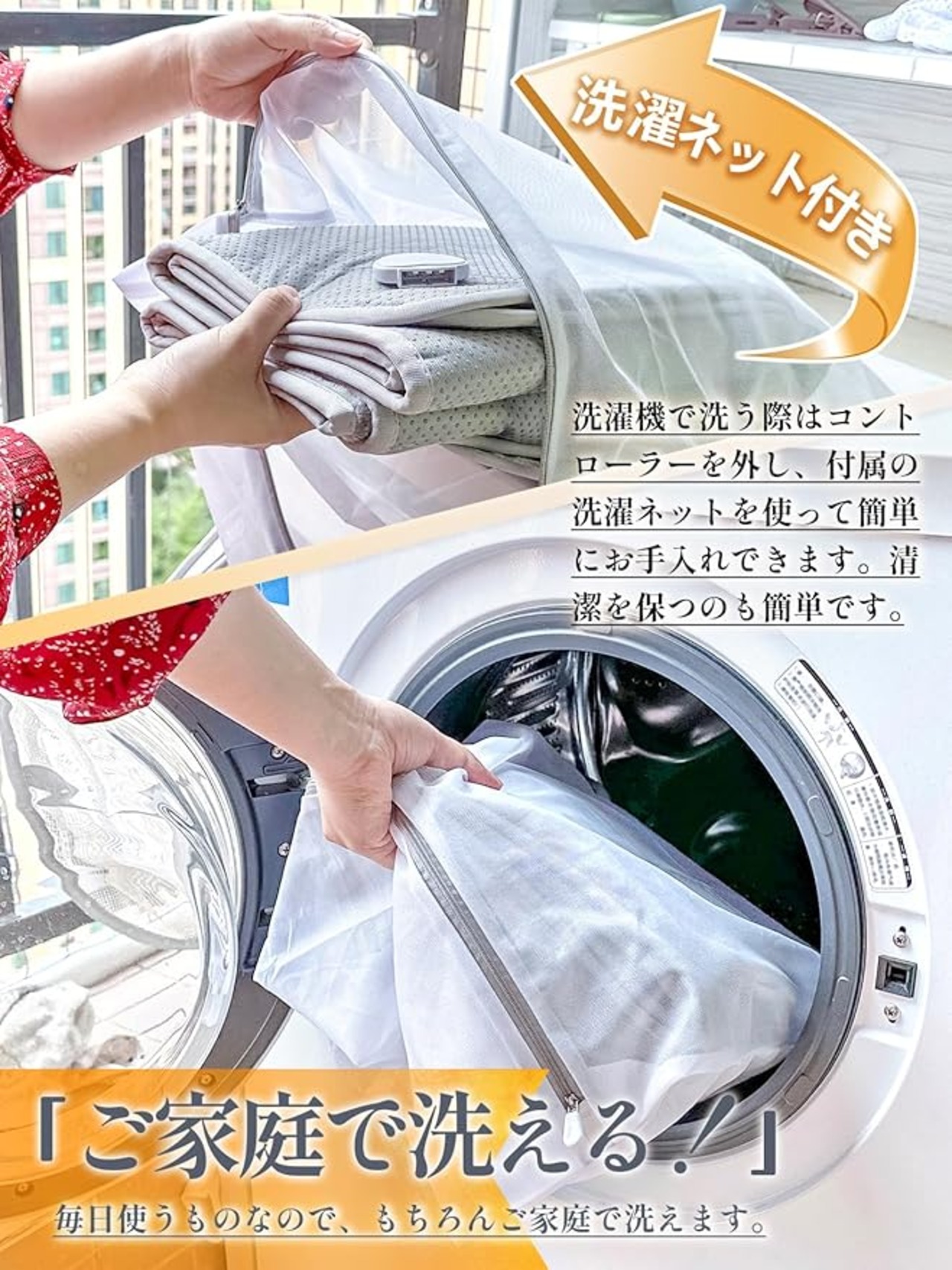丸洗い可能で常に清潔 - マット本体は丸洗い可能で、いつも清潔な状態を保てます。手洗い推奨ですが、洗濯機使用の場合はネットに入れ、ウール・手洗コースをお使いください。さらに、洗濯袋が付属しており、洗濯がより簡単です。