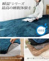 『W静電気防止+CICA加工で肌に優しい』生地には静電気防止加工に加えて、特殊な導電層技術を採用し、寒い季節に起こる静電気の不快感を大幅に緩和しました。韓国美容でも話題の、肌荒れを防ぐ天然由来成分のCICA加工により、しっとりなめらかな心地よい肌触りに仕上げました。真冬の冷たい外気の中でも、暖かい敷きパッドで優しく冷えた身体を包んでくれます。